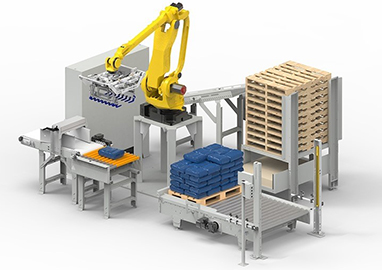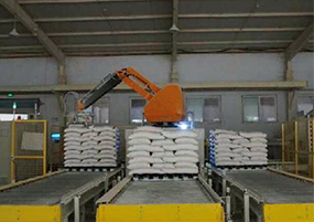 低位雙立柱碼垛機(jī)是將包裝機(jī)輸送來(lái)的料袋按照用戶(hù)要求的工作方式(如每層5袋,每垛8層)自動(dòng)堆疊成垛,并將成垛的物料進(jìn)行輸送的設(shè)備。