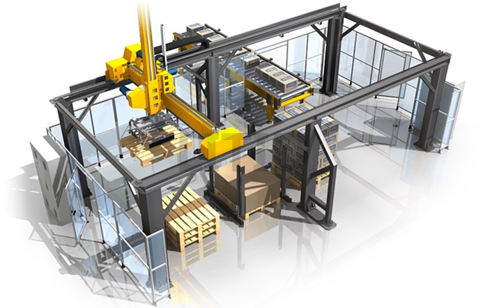 自動堆垛機執(zhí)行的多是抓放操作,即它的機械手臂從傳送帶上抓取物料,將其向上提取進行碼垛的動作循環(huán),故機械手臂完成碼垛作業(yè)其與傳送帶及托盤的位置配合有很大關(guān)系。所謂碼垛是按照集成單元化思想,將物料按照一定模式堆碼成垛,以便使單元化的物垛實現(xiàn)物料的存儲、搬運、裝卸、運輸?shù)任锪骰顒印?/span>