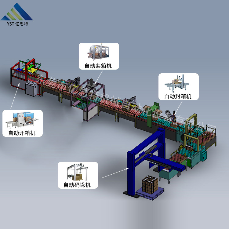 2.裝箱機部分,可以采用裝箱機械手或,機器人裝箱。